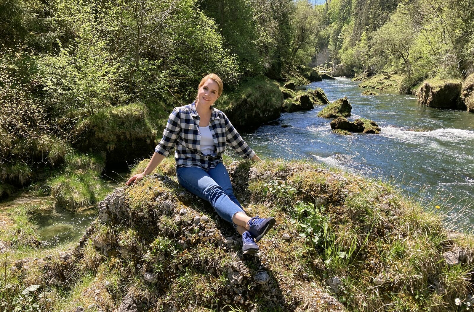 Donau-Reise - Von Passau nach WienJudith Rakers an der Traun, einem beliebten Tauch- und Schnorchelgebiet am Traunfall-Wasserfall.Bild: © WDR/Bavaria Entertainment GmbH/B / WDR Kommunikation/Redaktion Bild