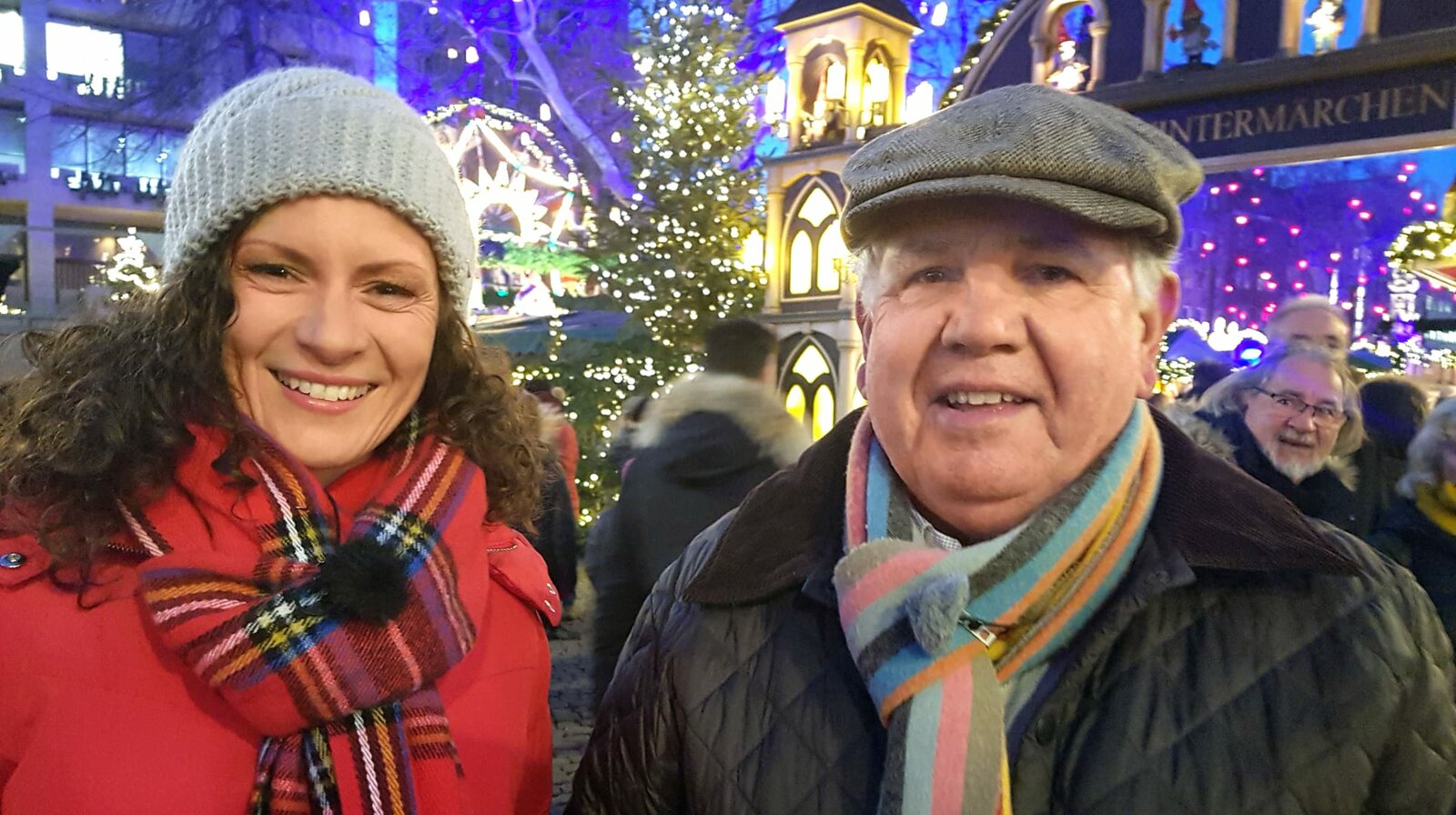 Weihnachten im RheinlandModeratorin Anne Willmes (l) und Peter Millowitsch auf dem Kölner HeinzelmännchenmarktBild: © WDR/Monika Winhuisen-Breloer