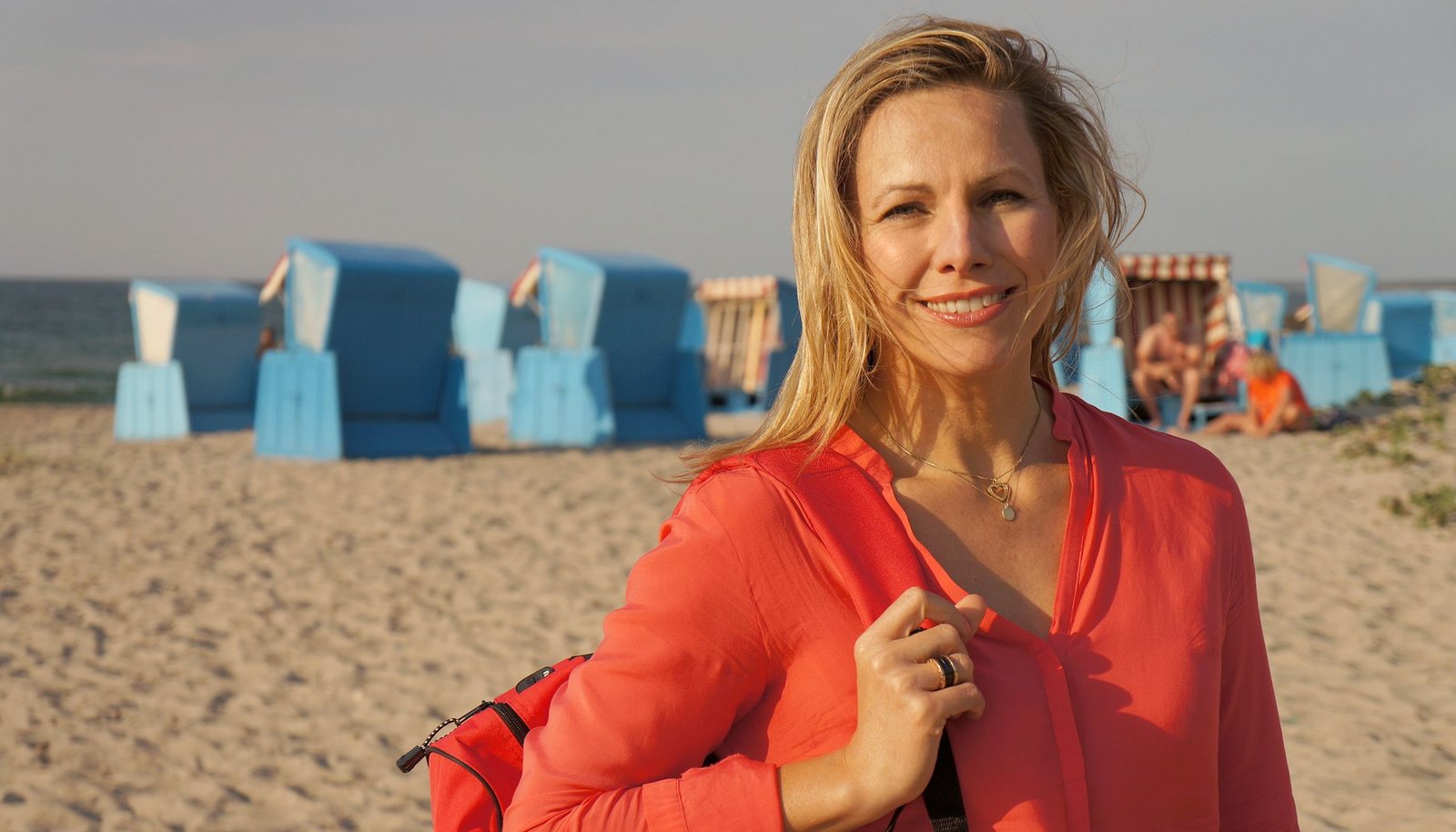 Der Darß - Deutschlands schöne HalbinselModeratorin Andrea Grießmann am Strand von Ahrenshoop.Bild: © WDR/Linda Windmann