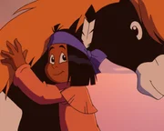 Ein Pferd für Kleines Blatt"Yakari", "Ein Pferd für Kleines Blatt." Kleines Blatt ist ein schweigsames Indianermädchen, das nur in der Gesellschaft von Pferden ihre Schüchternheit ablegt. Yakari schlägt vor, einen Mustang für sie einzufangen, damit sie mehr Selbstbewusstsein gewinnt. Kleines Blatt gefällt die Idee, und sie ziehen los auf der Suche nach den Wildpferden. Es dauert nicht lange, bis ihr ein Pferd mit rotem Fell ins Auge sticht. Sie hat auch schon den passenden Namen für den Mustang gefunden: Rote Wolke. Doch Kleines Blatt ist nicht die einzige, die das schöne Tier für sich haben will.Bild: © ORF/OD Media
