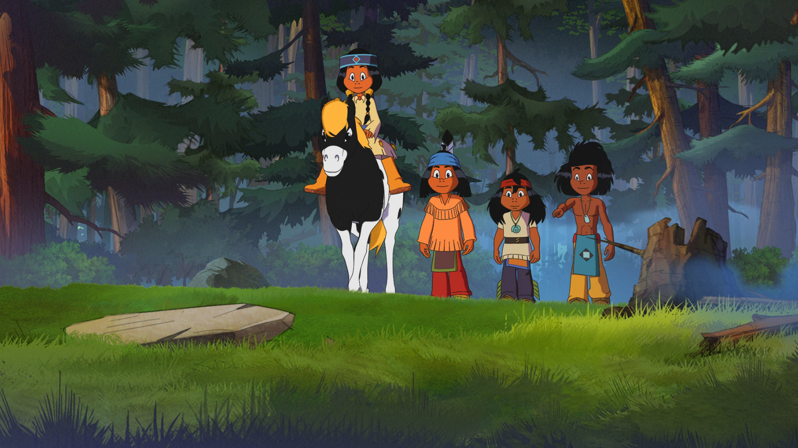 Der Zorn der RabenYakari (l.) hat am meisten Brennholz gesammelt, Regenbogen (m.) am zweitmeisten und Kleiner Dachs (r.) am wenigsten.Bild: © WDR/Ellipsanime Productions/Belvision/Les Cartooneurs Associés/2 Minute