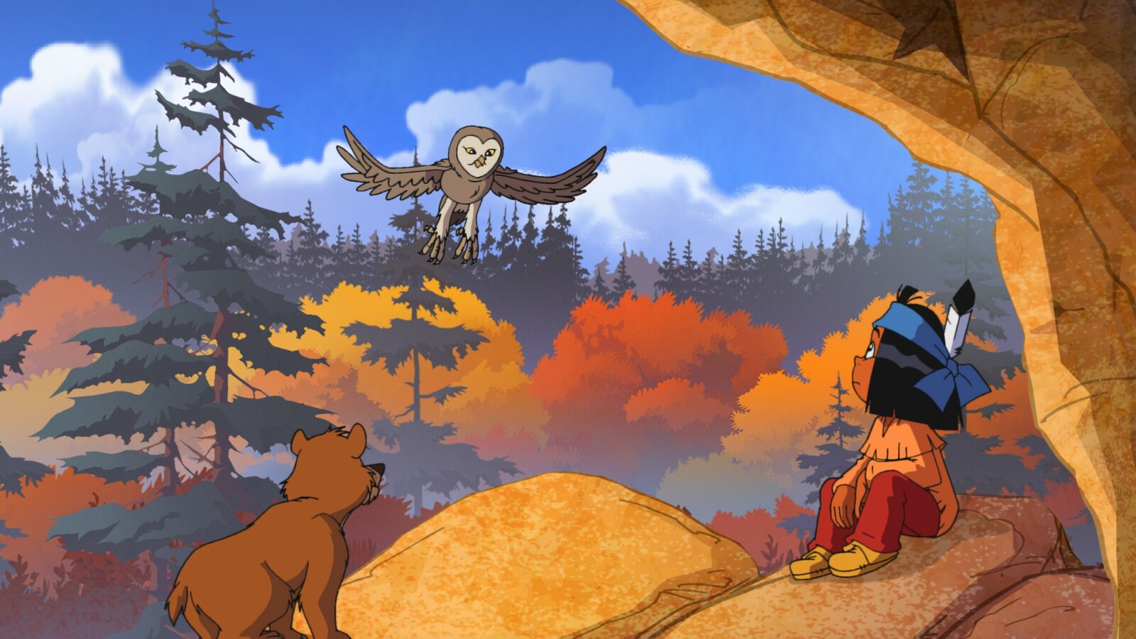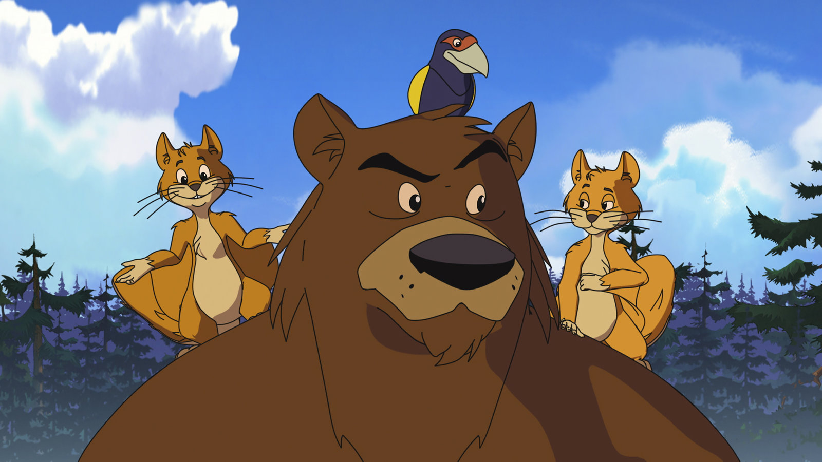 Der heilige TomahawkDer Bär mit seinen Freunden, den Flughörnchen und dem Vogel GroßschnabelBild: © WDR/Ellipsanime Productions/Belvision/Les Cartooneurs Associés/2 Minute
