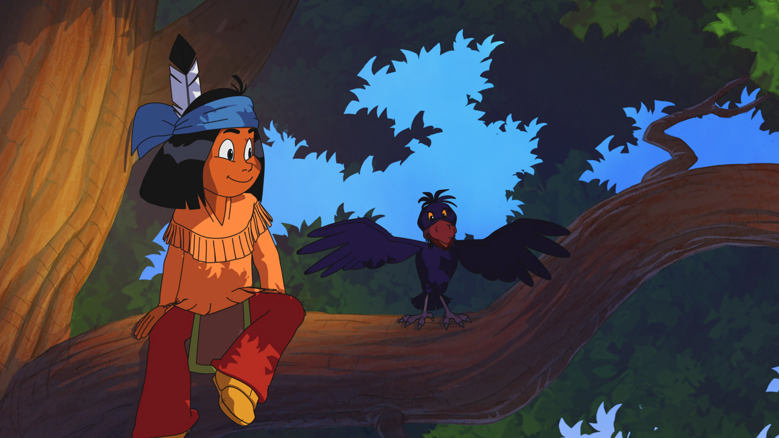 Der Pfad der BisonsRabe Krickrack erzählt Yakari von Tausendmäulers Gedächtnisverlust.Bild: © WDR/Ellipsanime Productions/Belvision/Les Cartooneurs Associés/2 Minute