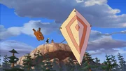 Der fliegende BärBär Honigtau wird von dem Flugdrachen, den Yakari gebaut hat, weggeweht.Bild: © WDR/Storimage