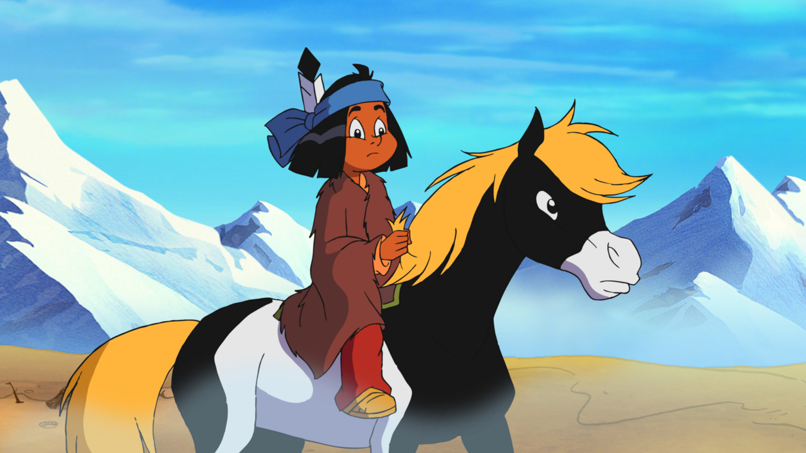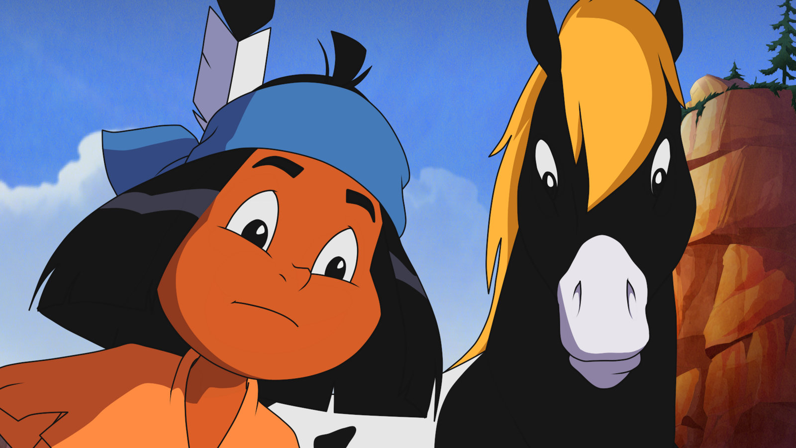 Yakari und Großer GrauerRegenbogen (r.) träumt von ihrem Pferd Großer Grauer.Bild: © WDR/Ellipsanime Productions/Belvision/Les Cartooneurs Associés/2 Minute
