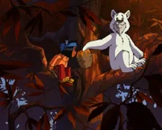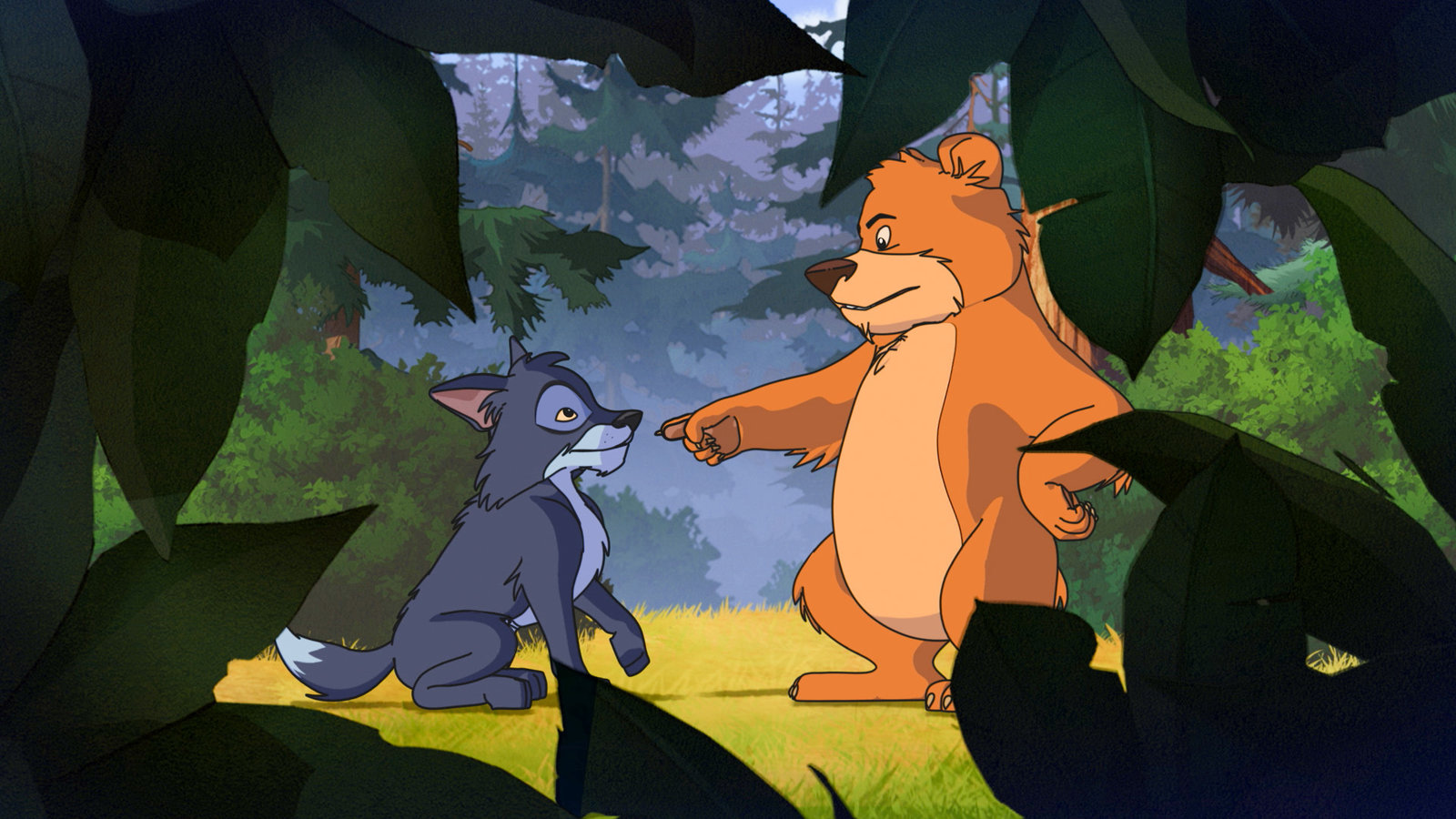 Der verstoßene WolfYakari trifft beim Honigsuchen im Wald auf seinen Freund, den weißen Bären Schneeball.Bild: © KI.KA/Storimages