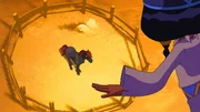 Die Schlucht der AdlerYakari will einen Totempfahl im Adlergebiet aufstellen, um die Geister zu besänftigen. Doch ein Adler will das nicht.Bild: © WDR/Storimage