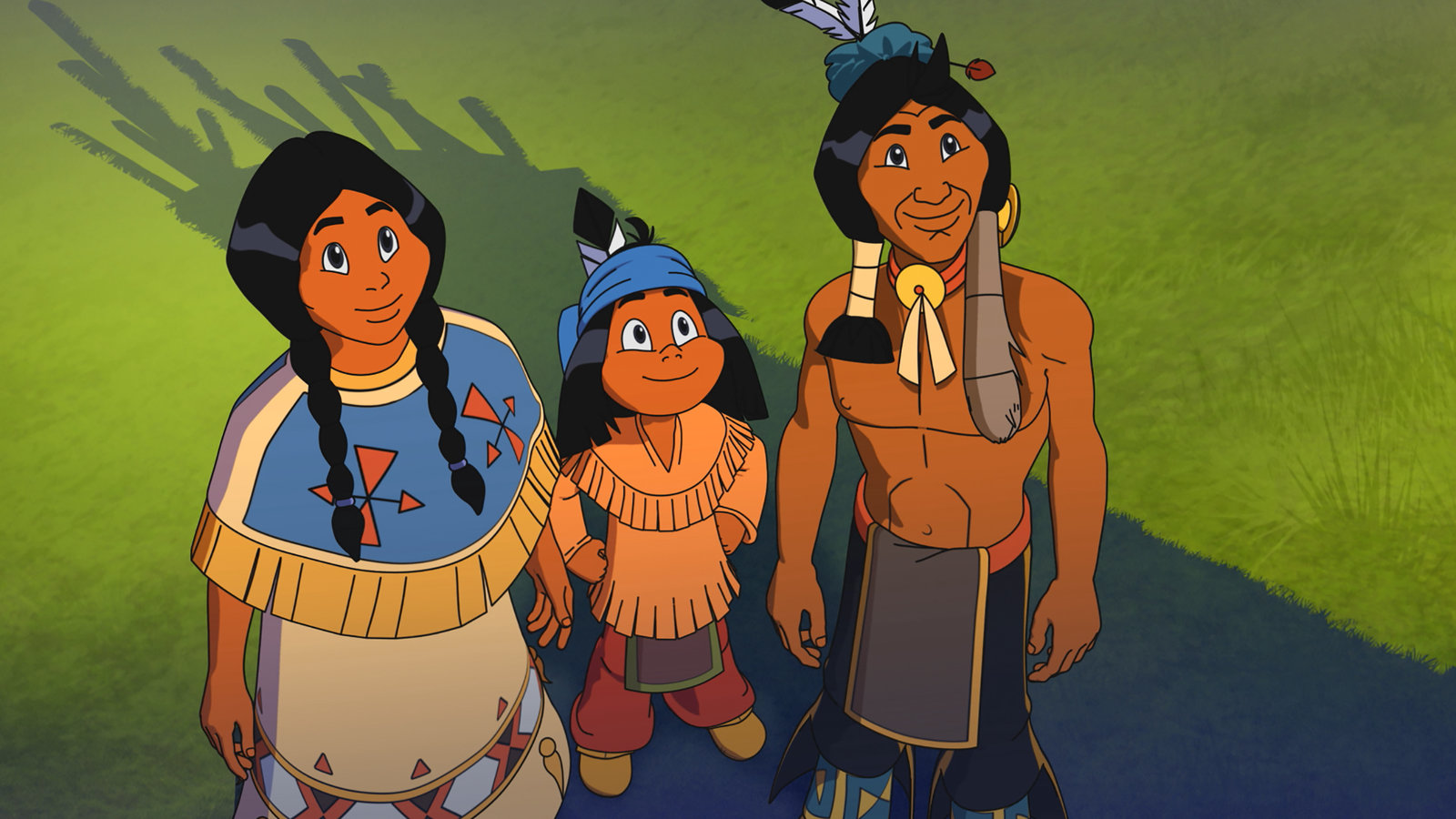 Die Schlucht der AdlerDie Familie beisammen: Mama Schimmernde Zöpfe, Yakari und Papa Kühner BlickBild: © WDR/Storimage