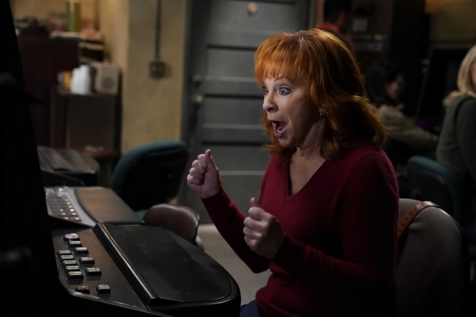 Das Studierzimmer und die DiscokugelJune (Reba McEntire)Bild: © 2021 CBS Broadcasting, Inc. All Rights Reserved. / Robert Voets Lizenzbild frei