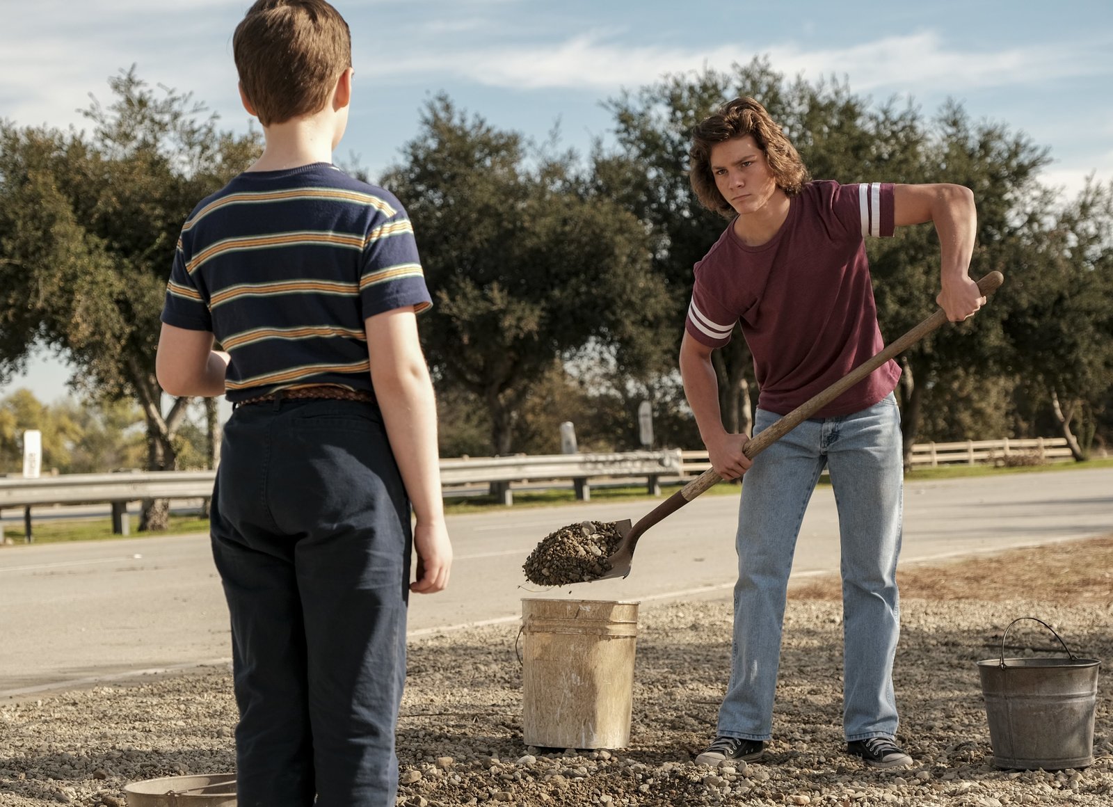 Das fiese Formtief und das Kreuz mit dem KreuzSheldon (Iain Armitage, l.); Georgie Cooper (Montana Jordan, r.)Bild: © 2020 Warner Bros. Entertainment Inc. All Rights Reserved. / Eddy Chen Lizenzbild frei