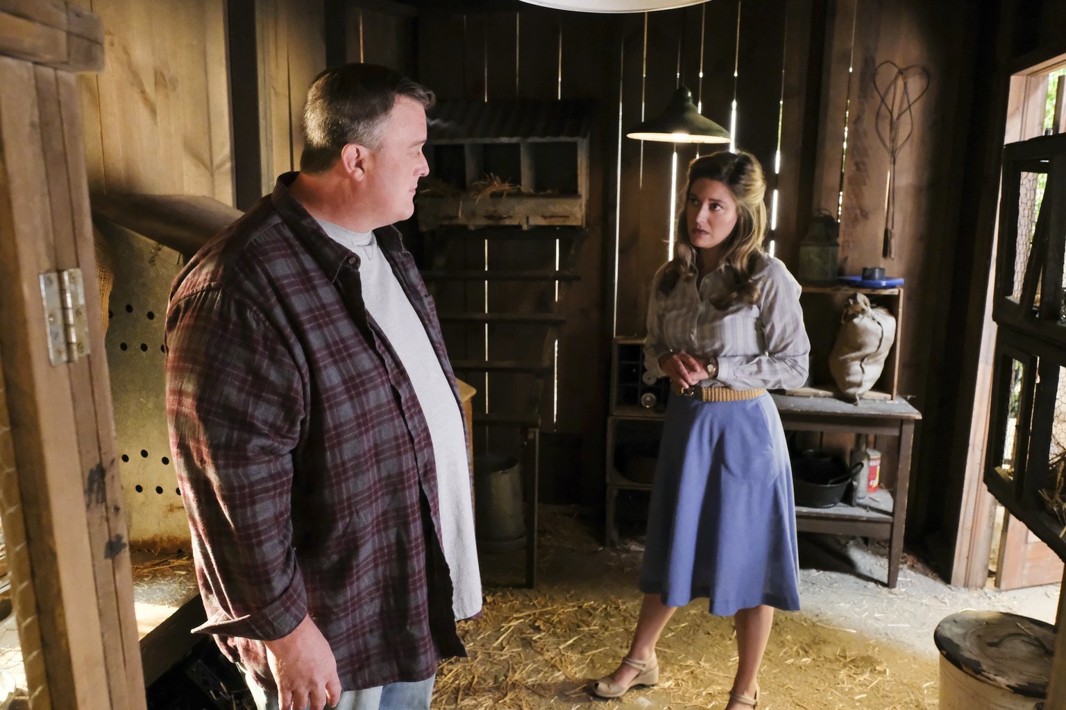 Dungeons, Dragons und die SonntagsschuleEigentlich möchte Mary (Zoe Perry, r.) den Vater von Billy, Herschel Sparks (Billy Gardell, l.), auf ihre Seite ziehen, als sie erfährt, dass ihre Söhne zusammen Dungeons & Dreagons spielen. Doch während Mary in dem Spiel eine Verletzung der kirchlichen Regeln sieht, freut sich Herschel lediglich, dass sein Sohn ein paar Freunde hat ...Bild: © Warner Bros. Lizenzbild frei