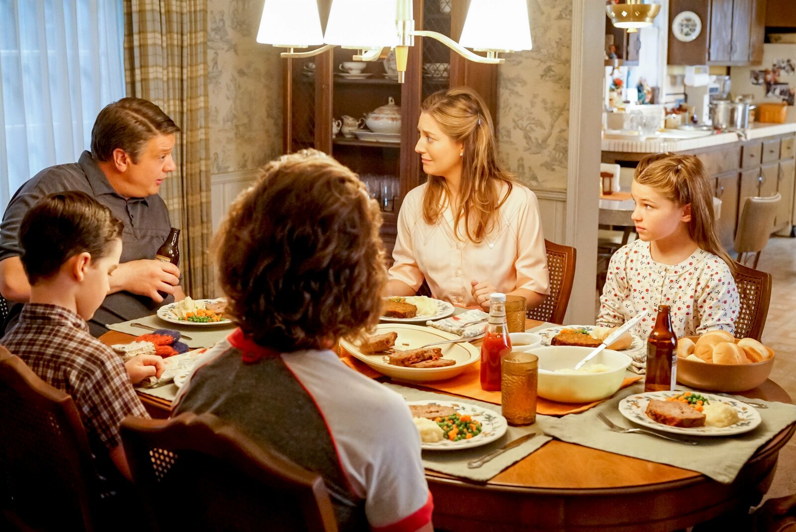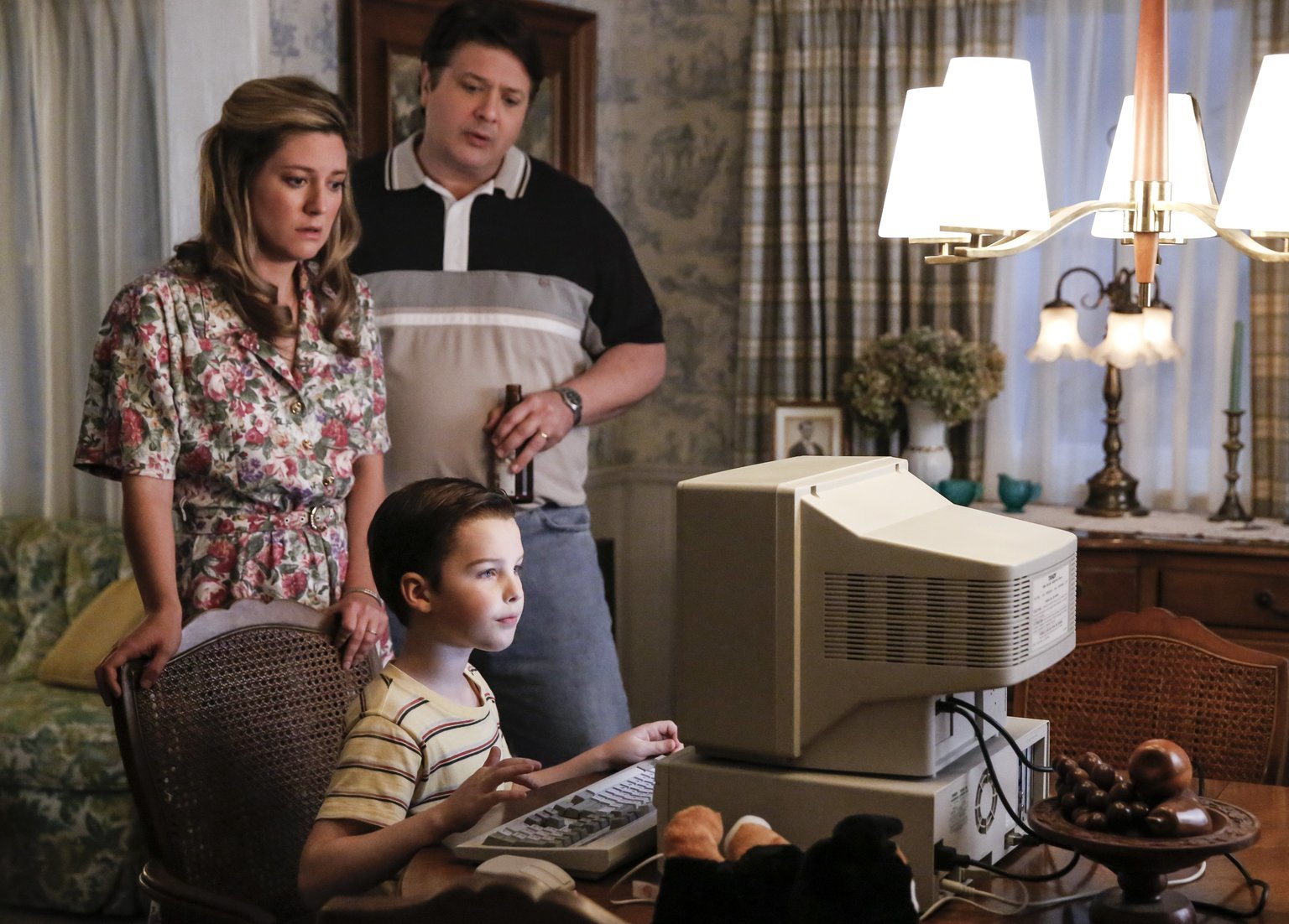 Ein Computer, ein Streit und eine Menge BierL-R: Ein teurer Wunsch von Sheldon (Iain Armitage, vorne) bringt seine Eltern Mary (Zoe Perry) und George (Lance Barber) in eine missliche Lage ...Bild: © Pro 7 / © Warner Bros. Television