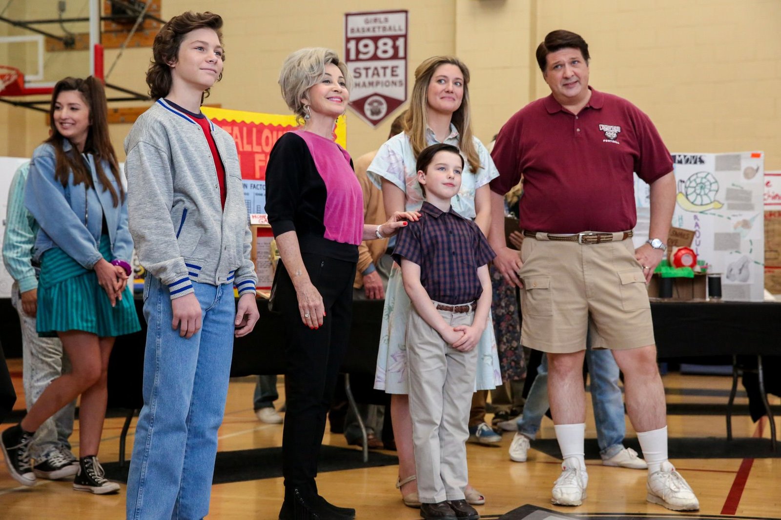 Killerasteroiden, Rebellion und Lampenfieber"Young Sheldon", "Killerasteroiden, Rebellion und Lampenfieber." Nachdem Sheldons Asteroid Projekt bei einer Wissenschaftsaustellung nicht gewonnen hat, ist er am Boden zerstört und will von der Wissenschaft nichts mehr wissen. Nach einer Sitzung bei Dr. Goetsch entscheidet er sich für eine Karriere als Schauspieler. Und tatsächlich scheint er Talent zu haben und bekommt die Hauptrolle in 'Annie'. Seine Eltern sind zunächst iritiert, dass ihr Sohn eine weibliche Hauptrolle spielen soll.Im Bild (v.li.): Montana Jordan (George Cooper Jr.), Annie Potts (Meemaw), Iain Armitage (Sheldon Cooper), Zoe Perry (Mary Cooper), Lance Barber (George Cooper Sr.).Bild: © ORF eins