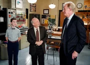 Der weltbeste Dad und das Team Wissenschaft(v.l.n.r.) Sheldon Cooper (Iain Armitage); Dr. John Sturgis (Wallace Shawn); Dr. Linklatter (Ed Begley jr.)Bild: © 2021 Warner Bros. Entertainment Inc. All Rights Reserved. / Bill Inoshita Lizenzbild frei