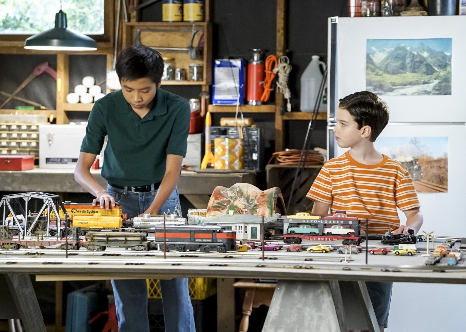 Poker, Gott und Mülltonnen"Young Sheldon", "Poker, Gott und Mülltonnen." Sheldons Vater erleidet einen Herzinfarkt. Mary muss sich nun um ihren Mann im Krankenhaus kümmern. Deshalb muss so schnell wie möglich ein Babysitter für die Kinder her. Großmutter Meemaw ist sofort zur Stelle. Allerdings hat Meemaw so ganz andere Erziehungsmethoden als Mary. Doch Sheldon ist von seiner Omi begeistert!Im Bild (v.li.): Ryan Phuong (Tam), Iain Armitage (Sheldon Cooper).Bild: © ORF eins