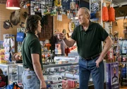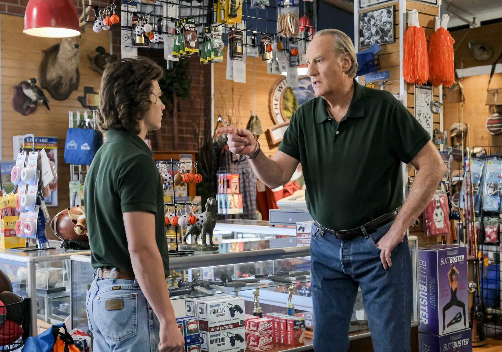 Schweinehirn und Fisch auf dem GrillGeorgie Cooper (Montana Jordan, l.); Dale Ballard (Craig T. Nelson, r.)Bild: © 2019 Warner Bros. Entertainment Inc. All Rights Reserved. / Bill Inoshita Lizenzbild frei