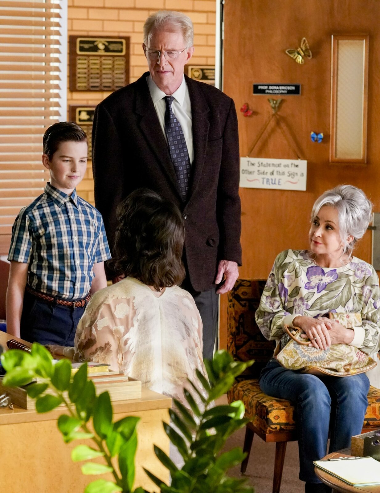 Der Sinn von allem und die SeifenblaseIain Armitage (Sheldon Cooper), Melanie Lynskey (Professor Ericson), Ed Begley Jr. (Dr. Linkletter), Annie Potts (Constance 'Meemaw' Tucker).Bild: © TM & © 2020 Warner Bros. Entertainment Inc. All Rights Reserved. Lizenzbild frei