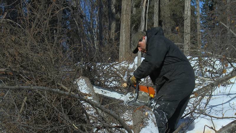 WintereinbruchJames Roberts saws a tree.Bild: © Discovery