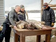 ElchsaisonCharlie Wright (L) and his brother, Shane Wright (R) butcher a moose.Bild: © DMAX