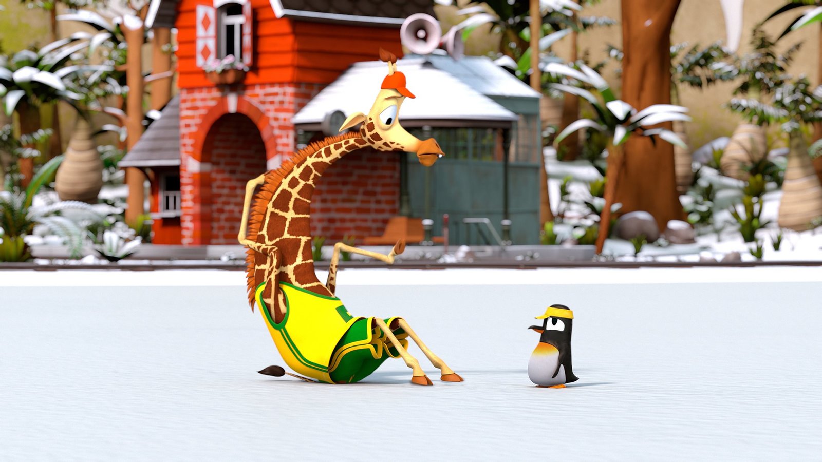 WinterfreudenBruno (li.) ist beim Eislaufen hingefallen und kommt nicht mehr auf die Beine. Pinguinmädchen Anni (re.) redet ihm gut zu.ÂBild: © ZDF/Grid Animation