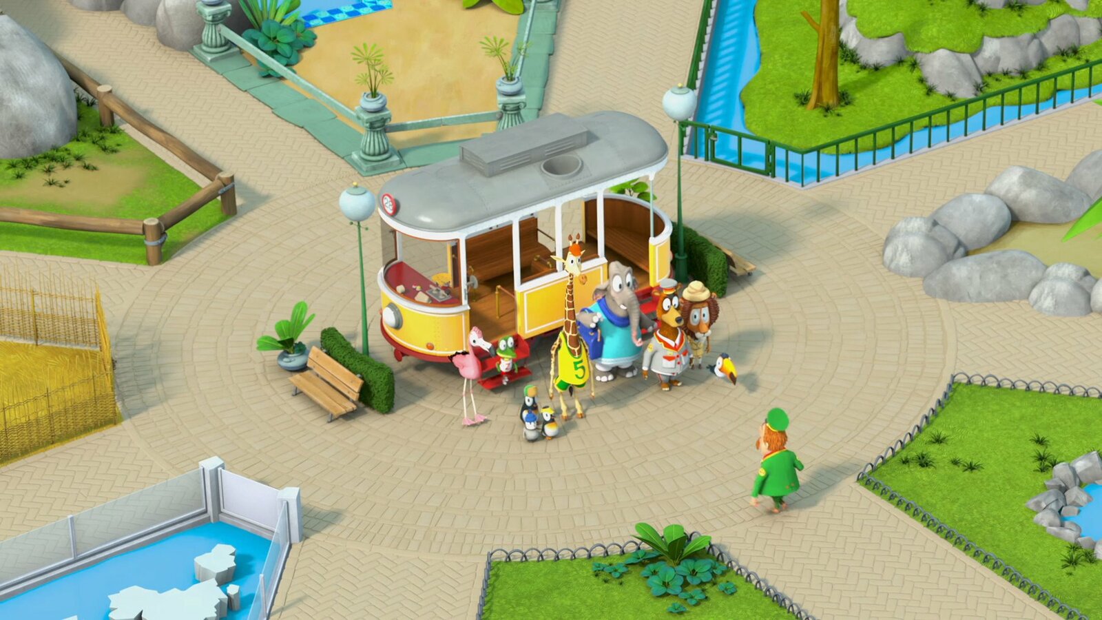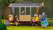 Das BergunglückDie Zoobande ist froh, dass die Bahn doch noch geborgen werden konnte.Bild: © ZDF/Gaumont Animation/PP Animation III Inc.