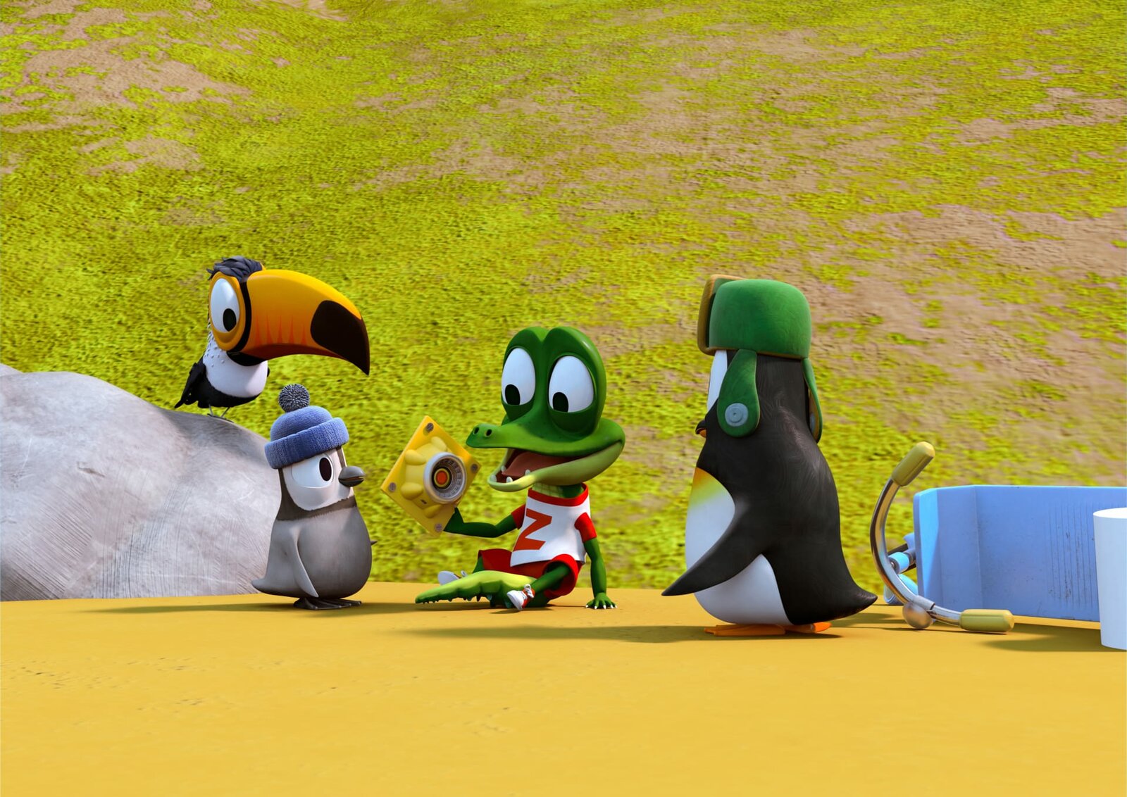 Die Blaufuß-Blinzel-MöweDie anderen Tiere wundern sich: Warum ist Zacki (Krokodil) heute so still?Bild: © ZDF/Grid Animation