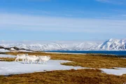 SpitzbergenIm Bild: Im Frühling suchen die Rentiere oft die restlichen Schneetaschen auf, um sich abzukühlen.Bild: © ORF/BBC/Andrew Murray