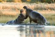 OkavangoMännliche Nilpferdkämpfe können Stunden dauern und sind manchmal tödlich.Bild: © ORF/BBC/Peter Bassett