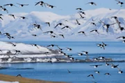 SpitzbergenDie kleinen Alkenvögel kehren zu ihren über 200 Brutplätzen auf Svalbard zurück. Die zahlreichsten Vogelart im Archipel.Bild: © ORF/BBC/Andrew Murray
