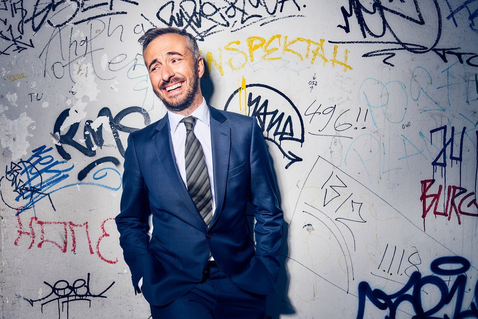 Folge 51Jan Böhmermann im blauen Anzug vor blauem Hintergrund.Bild: © ZDF und Jens Koch.