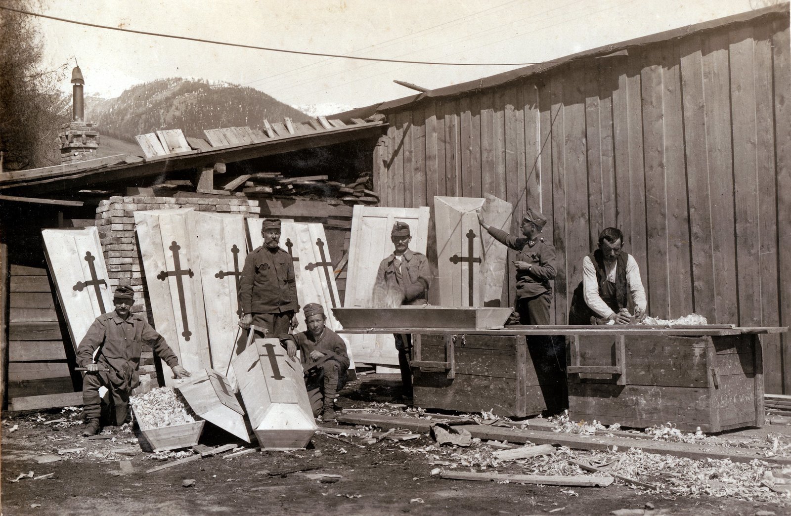 Krieg vor der Haustür - Tirol im 1. WeltkriegSargproduktion, Bild von Foto-Pionier Anton Trixl. Der Soldat und Fotograf Anton Trixl hinterließ ein Album mit mehr als 350 einzigartigen Fotografien aus dem Kriegsalltag im 1. Weltkrieg.Bild: © ORF III