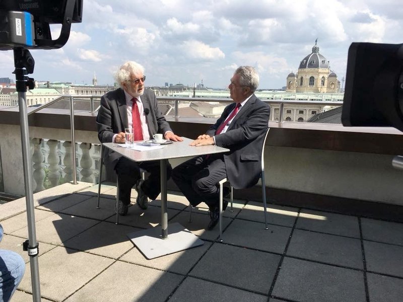 Heinz Fischer - Auf den Spuren der Republik - 1918-1938Heinz Fischer im Gespräch mit Historiker Gerhard Botz; Terrasse Justizpalast.Bild: © ORF III