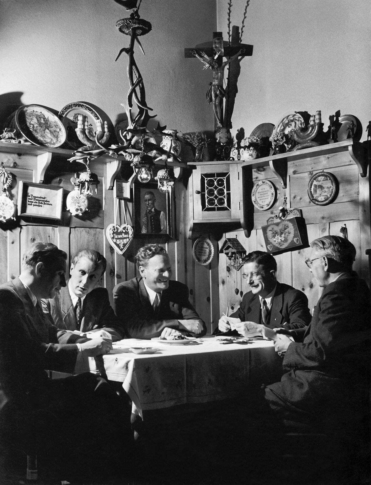 Jahrzehnte in Rot Weiß Rot - Die 50er JahreLeopold Figl im Gespräch mit Parteikollegen und Journalisten in seiner Wohnung. Der populäre Bundeskanzler verkörpert den typischen Österreicher der 50er-Jahre wie kaum ein anderer Politiker.Bild: © ORF III
