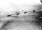 Volle Kraft voraus - Die k. u. k. KriegsmarineDie Kriegsschiffe Helgoland, Saida, Novara und Sankt Georg im Konvoi.Bild: © ORF/TV & More/K.u.k. Kriegsmarinearchiv/Fritz Marschner