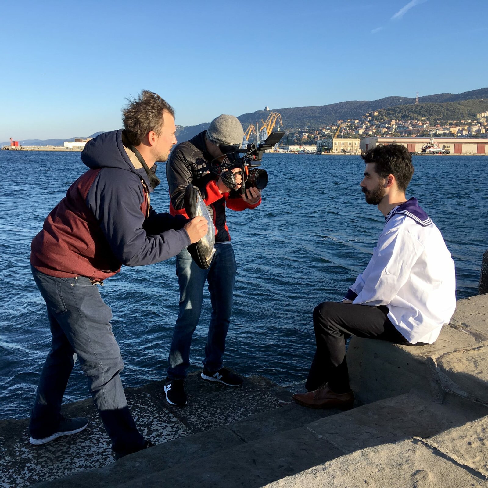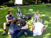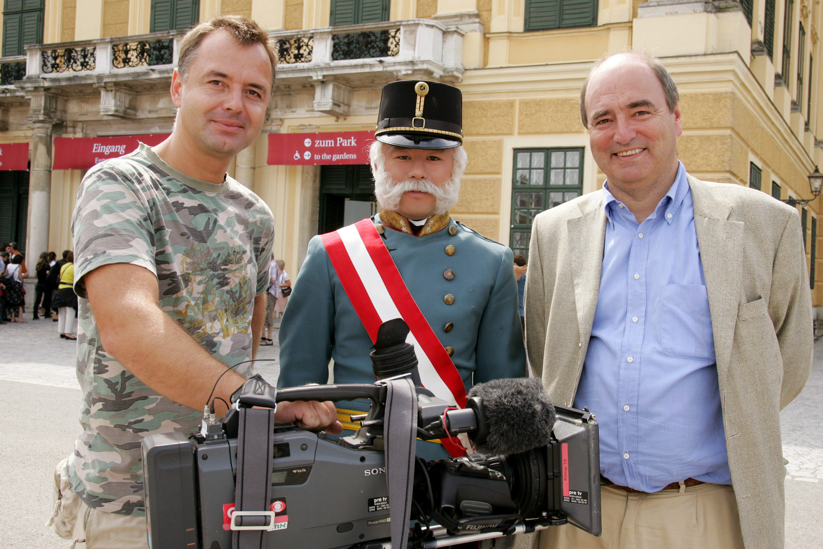 Kaiser Franz JosephKameramann Werner Veits (li.) und Gestalter Andreas Novak (re.) mit Kaiser Franz Joseph Darsteller beim Dreh vor Schloß Schönbrunn.Bild: © ORF III