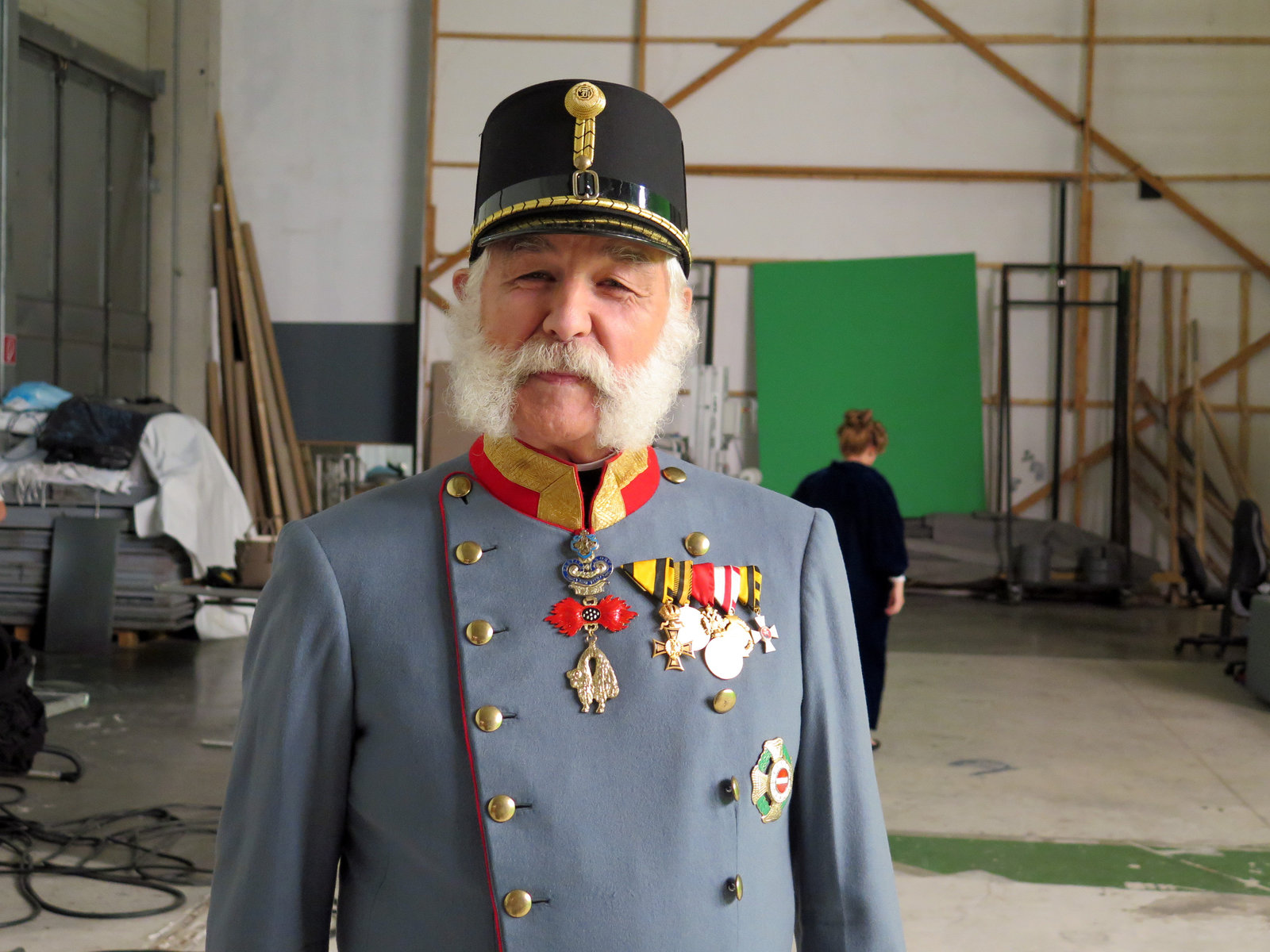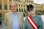 Kaiser Franz JosephGestalter Andreas Novak mit Kaiser Franz Joseph Darsteller beim Dreh vor Schloß Schönbrunn.Bild: © ORF III