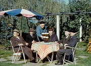 Österreich in Farbe - Die WirtschaftswunderjahreFür die Filmchronik versammeln sich Ende der Fünfzigerjahre die fünf ältesten Bewohner von Attnang-Puchheim in Oberösterreich vor der Kamera - gemeinsam beinahe ein halbes Jahrtausend alt.Bild: © ORF III