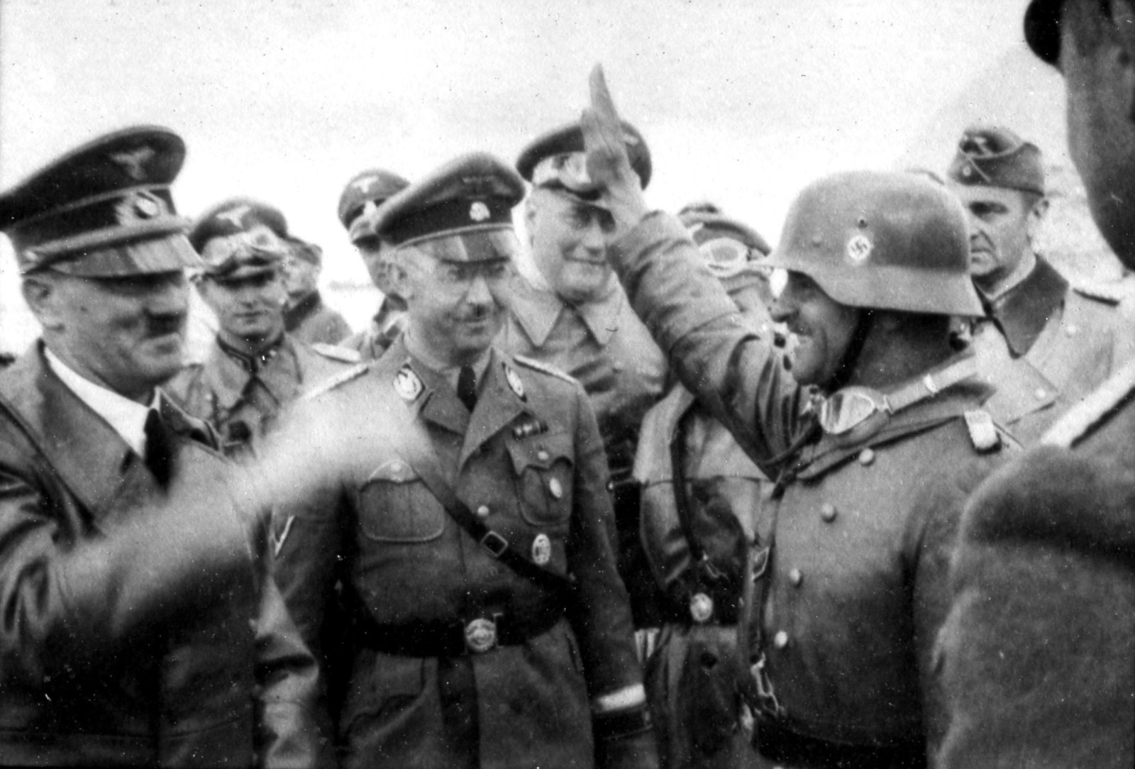 "Der 2. Weltkrieg", "(2) - Hitlers Todesbrigaden." Während der Jahre der NS-Herrschaft und erst recht in der Phase des Krieges war die SS das wichtigste Zwangsinstrument zur Stabilisierung der Diktatur, der Beseitigung von Systemgegnern und der Durchführung des ethnischen Vernichtungskrieges. Mit dem Angriff auf Polen beginnt der Aufstieg der Waffen-SS zur militärischen Parallelarmee. Ihre Mitglieder sollten sich nicht lediglich als Kriegskämpfer, sondern auch als politische Soldaten verstehen, als fanatische Fahnenträger der NS-Weltanschauung im Fronteinsatz. Eine Dokumentation von Andreas Novak und Tom Matzek.Im Bild: Adolf Hitler und Heinrich Himmler bejubeln Waffen-SS-General Sepp Dietrich: auch an den Kriegsfronten vertraute Hitler auf die SS-Divisionen.Bild: © ORF/BA Berlin