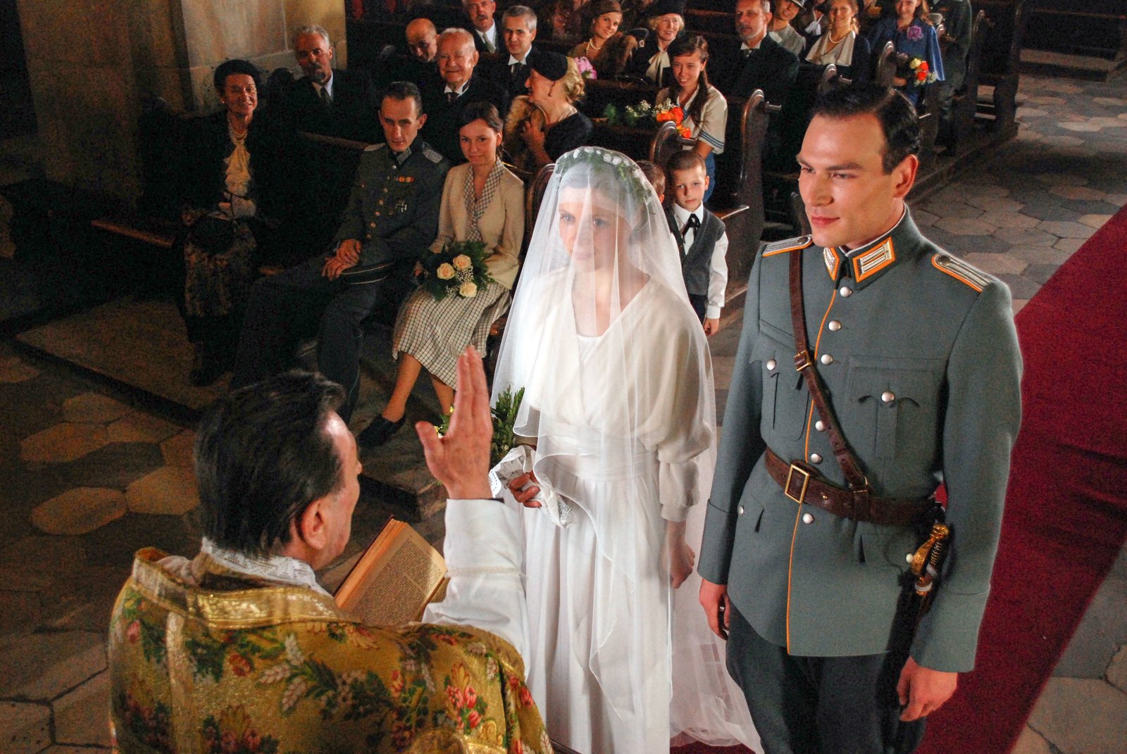 Stauffenberg - Die wahre GeschichteHochzeit in Bamberg: Im September 1933 heiraten Leutnant von Stauffenberg (Peter Becker) und Freiin Nina von Lerchenfeld (Julia Brendler).Bild: © ORF III