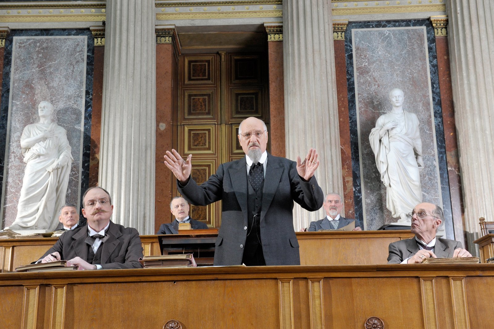 Der Rest ist Österreich - Der Vertrag von St.Germain und die FolgenKarl Renner (Gerhard Dorfer) vor der Nationalversammlung: Der Vertrag von St. Germain muss unterzeichnet werden.Bild: © ORF III