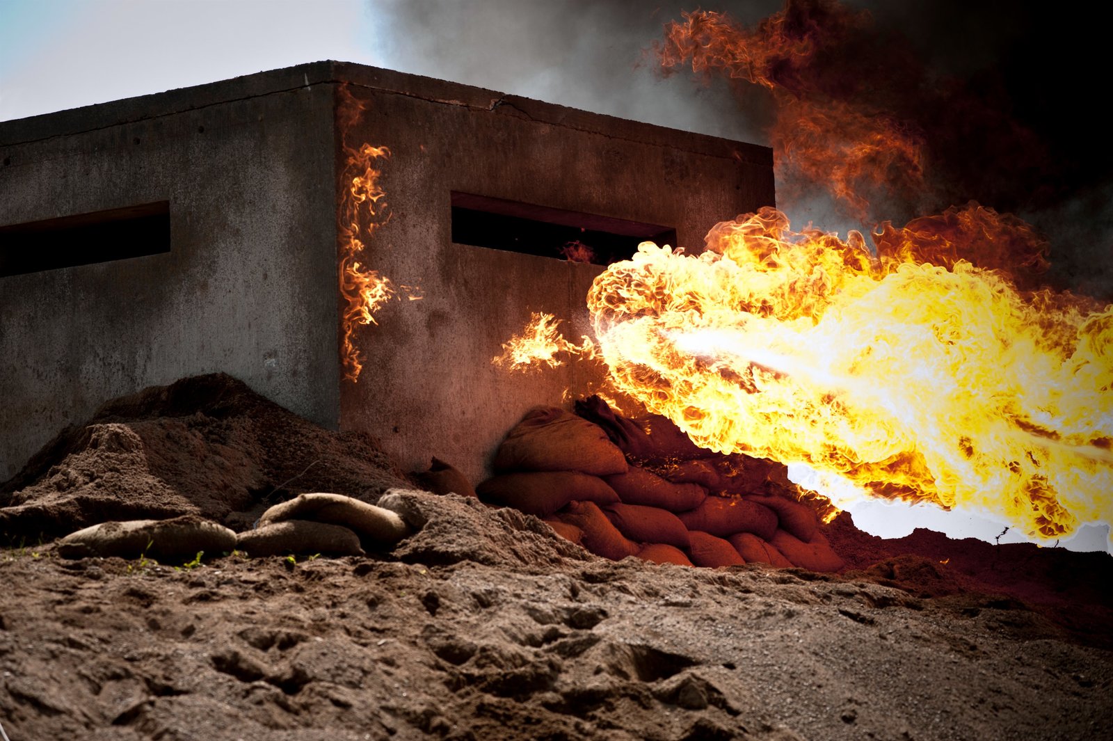 Die letzten Helden des Zweiten Weltkrieges - Die Landung in der NormandieVisualisierung der deutschen Pillendose als Flammenwerfer.Bild: © ORF III