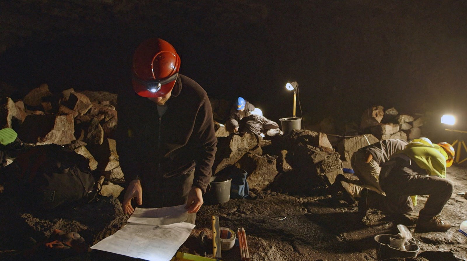 Die Welt im Jahr 1000Professor Wemhoff bei Grabung in einer Lavahöhle in Island: Versteck verstoßener Wikinger um das Jahr 1000Bild: © phoenix/ZDF/Hans Jakobi