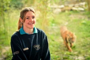 Umzug mit TigernTierpflegerin Rachel vor dem neuen Gehege der Sumatra-Tiger.Bild: © ORF/Universal