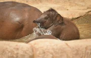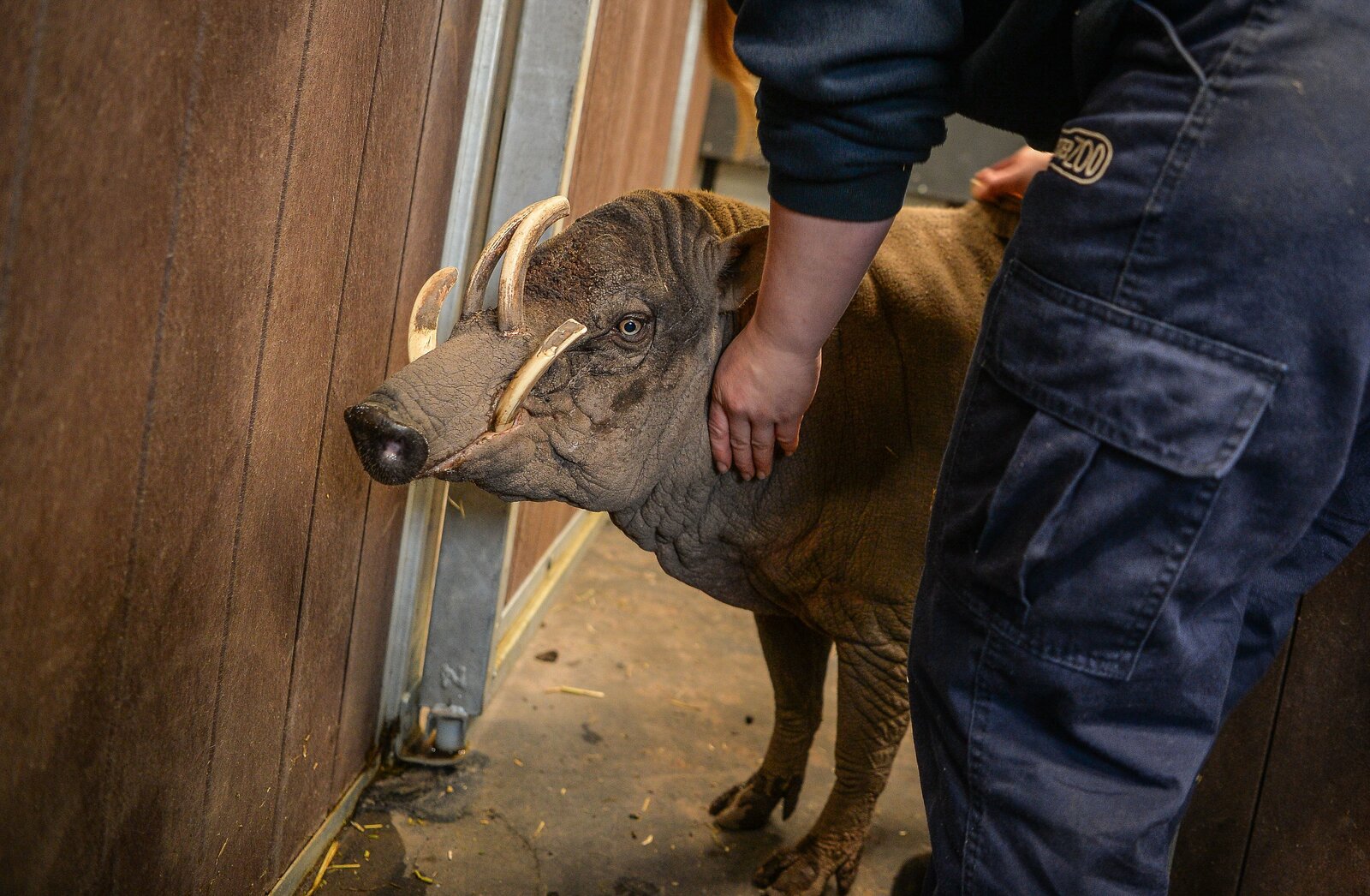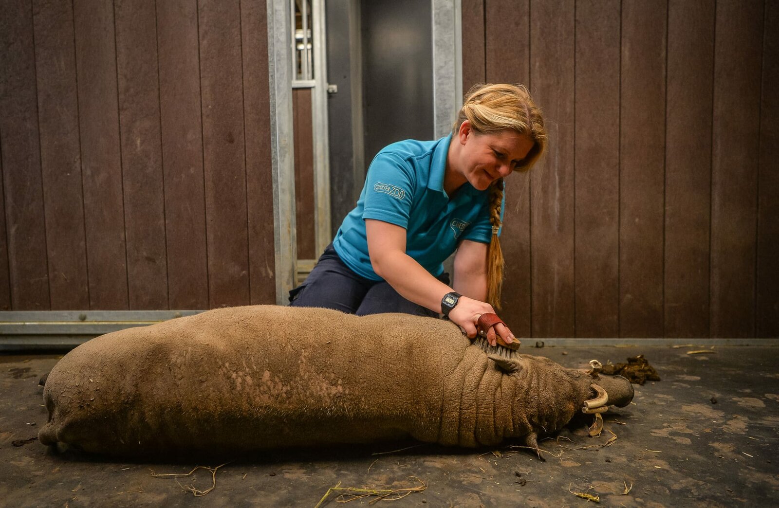 Der Pinguin-KindergartenTierpflegerin Hannah mit Hirscheber Sausu.Bild: © Blast! Films Lizenzbild frei