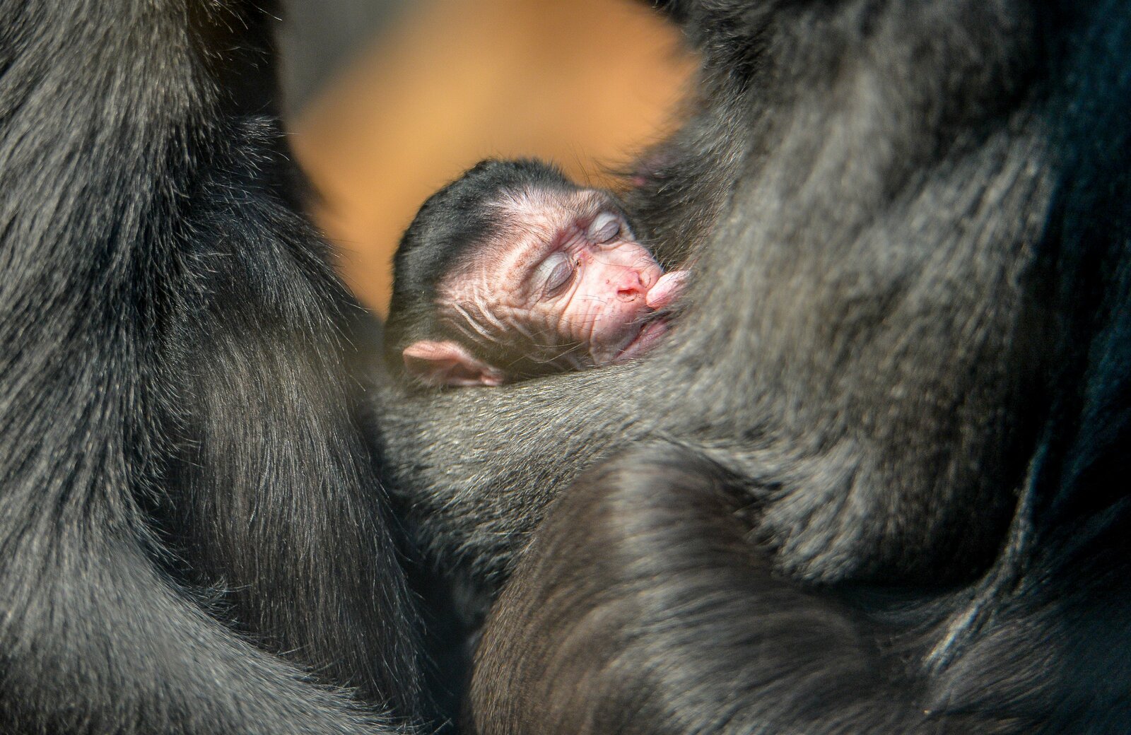 Ein Gibbon mit HöhenangstKupferstreifen-Pinzettfisch.Bild: © ORF/Universal/Steve Rawlins