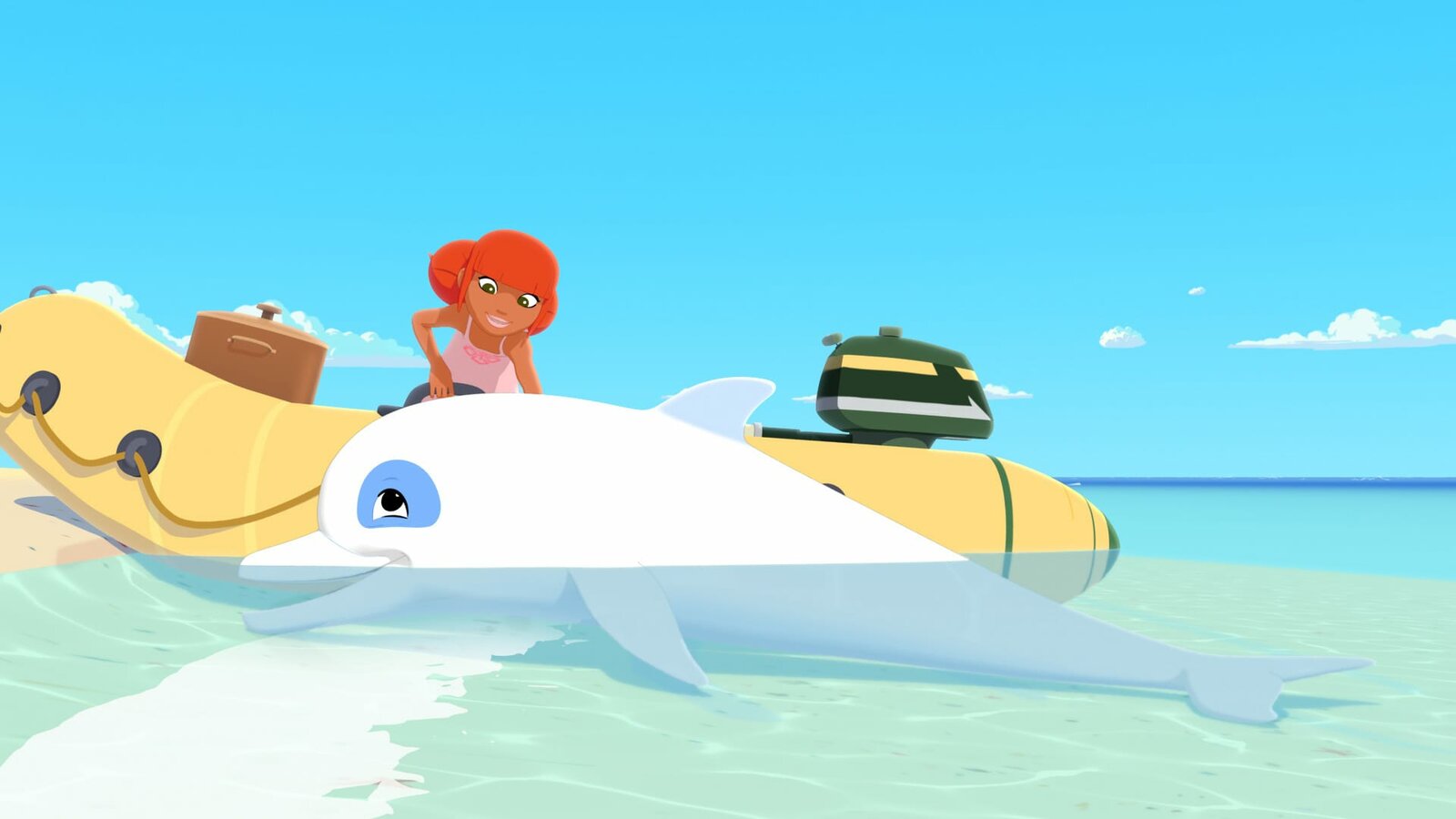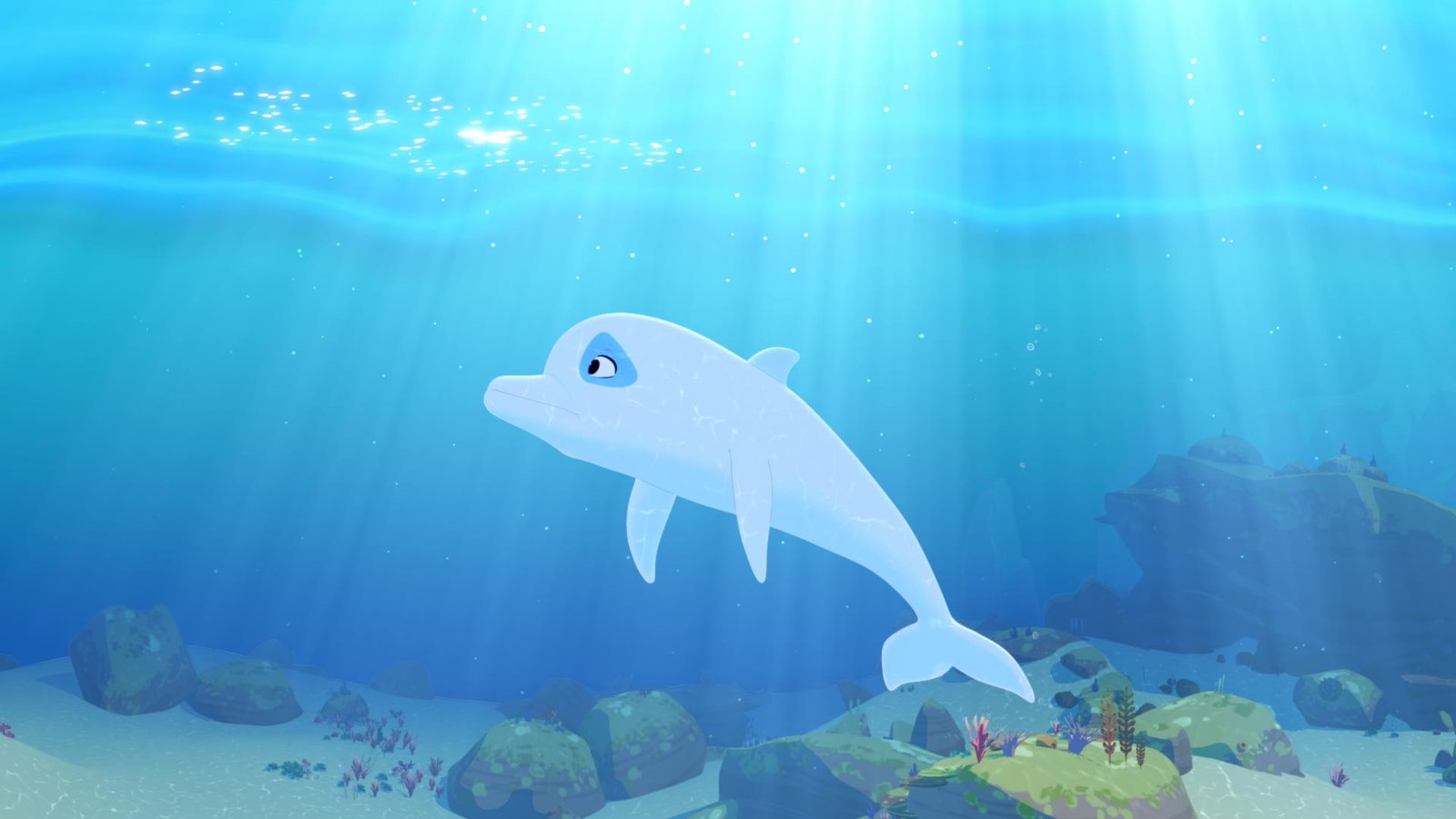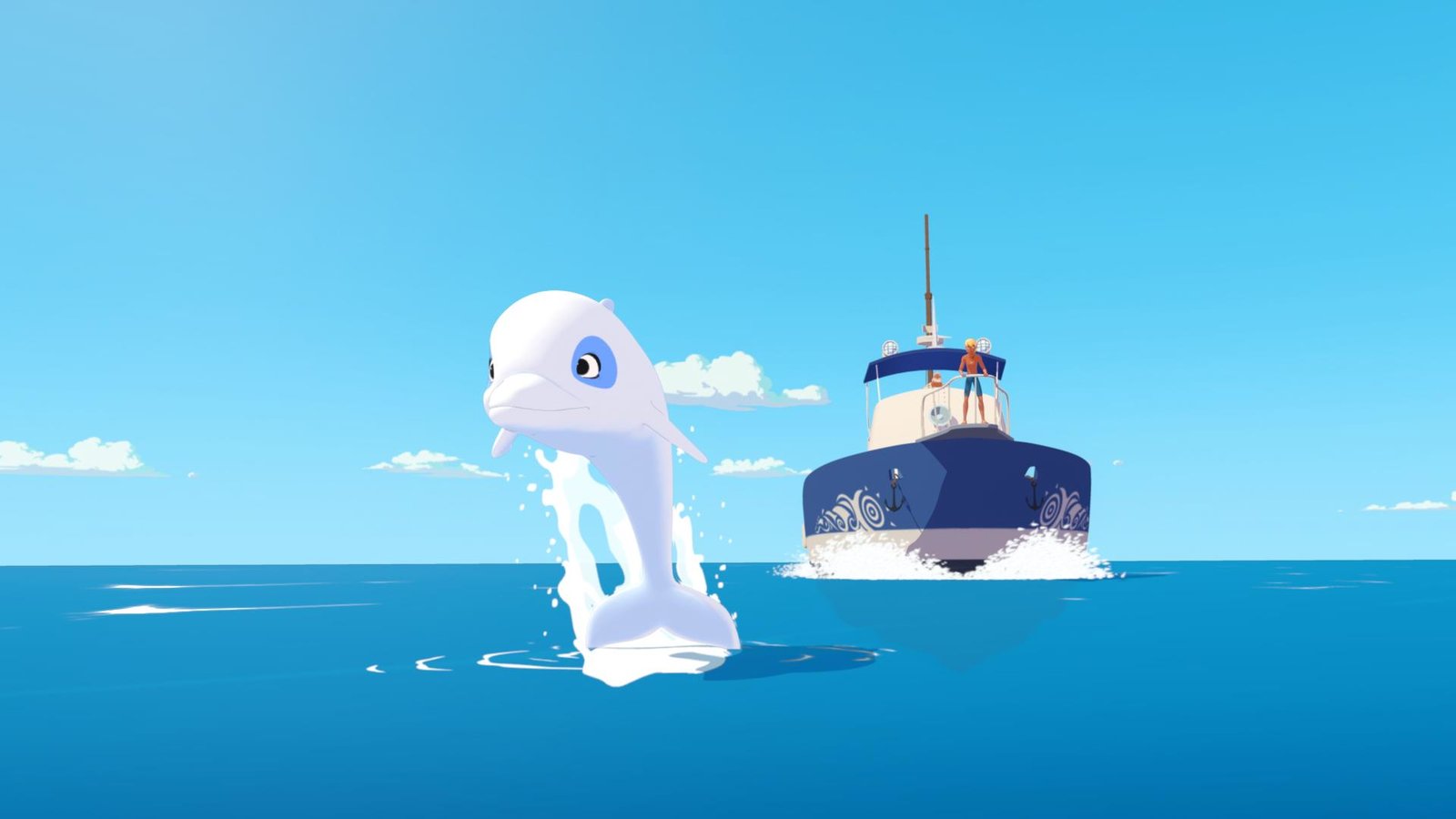 Die Prinzessin des MeeresDer weiße Delfin Zoom freut sich. Er hat am Ufer seinen Freund Yann entdeckt. Er wird ihn zu Yanns kleiner Schwester Marina führen, die sich davongeschlichen hat, um eine Meerjungfrau zu finden.Bild: © ZDF und C) Media Valley/ Marzipan Films/TF1/Gaumont Animation - 2015
