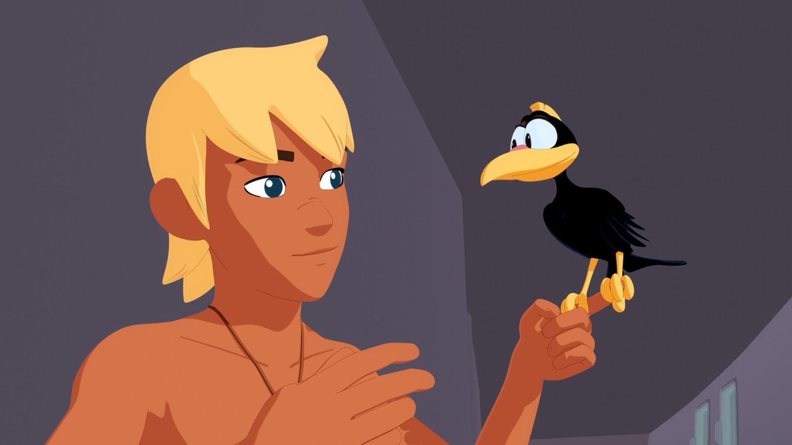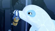 Das mysteriöse TiefseemonsterZoom (l.) hat die Perle Poemari zurück erobert und bringt sie freudig zu Yann (r.). Sie hoffen, mit Hilfe der Perle Ramana aus seinem tiefen Schlaf zu holen.Bild: © ZDF/Media Valley/Marzipan Films