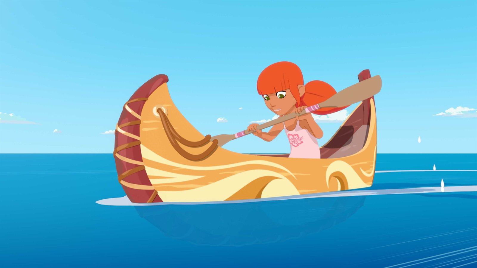 Allein auf der InselMarina ist heimlich von zu Hause weggeschlichen, um mit ihrem kleinen Kanu auf eine einsame Insel zu fahren. Sie möchte beweisen, dass sie dort alleine überleben kann.Bild: © ZDF und C Media Valley/Marzipan Films/TF1/Gaumont Animation - 2915