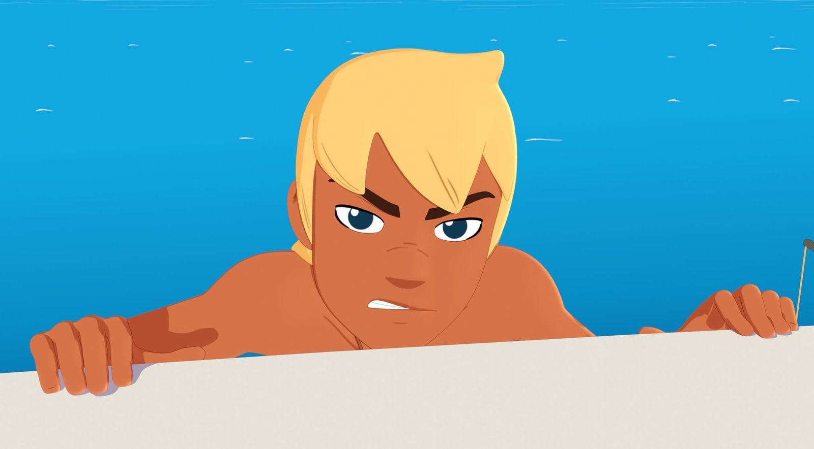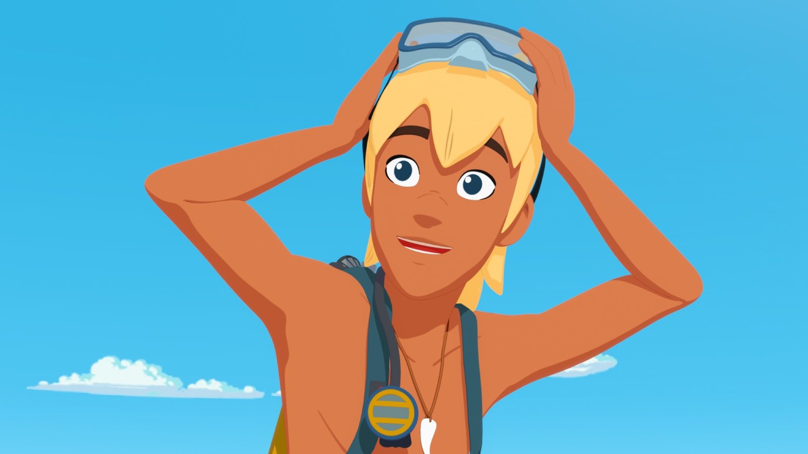 Einsatz für die HaieYann möchte herausfinden, warum die kleinen, normalerweise völlig harmlosen Haie vor der Insel plötzlich seine Freundin Timeti angegriffen haben.Bild: © ZDF und c Media Valley/ Marzipan Films/TF1/Gaumont Animation - 2015