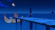 Der gestohlene TikiYann gibt dem Beo John-Sebastian den Auftrag, Hilfe zu holen. Yann hat den gestohlenen Tiki auf der Jacht des Ganoven Van Krook entdeckt und möchte, dass Onkel Patrick die Küstenwache informiert.ÂBild: © ZDF/Media Valley/Marzipan Films/TF1/Gaumont Animation